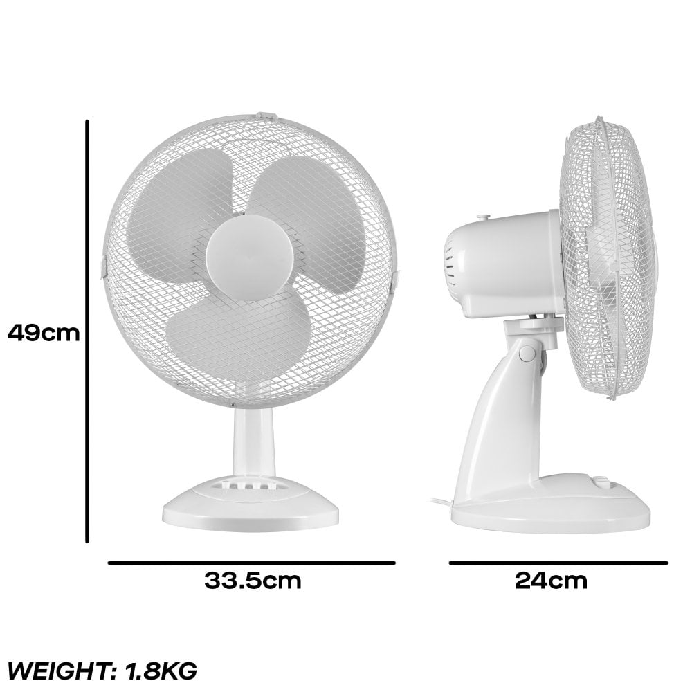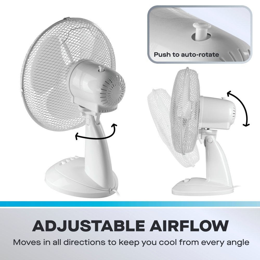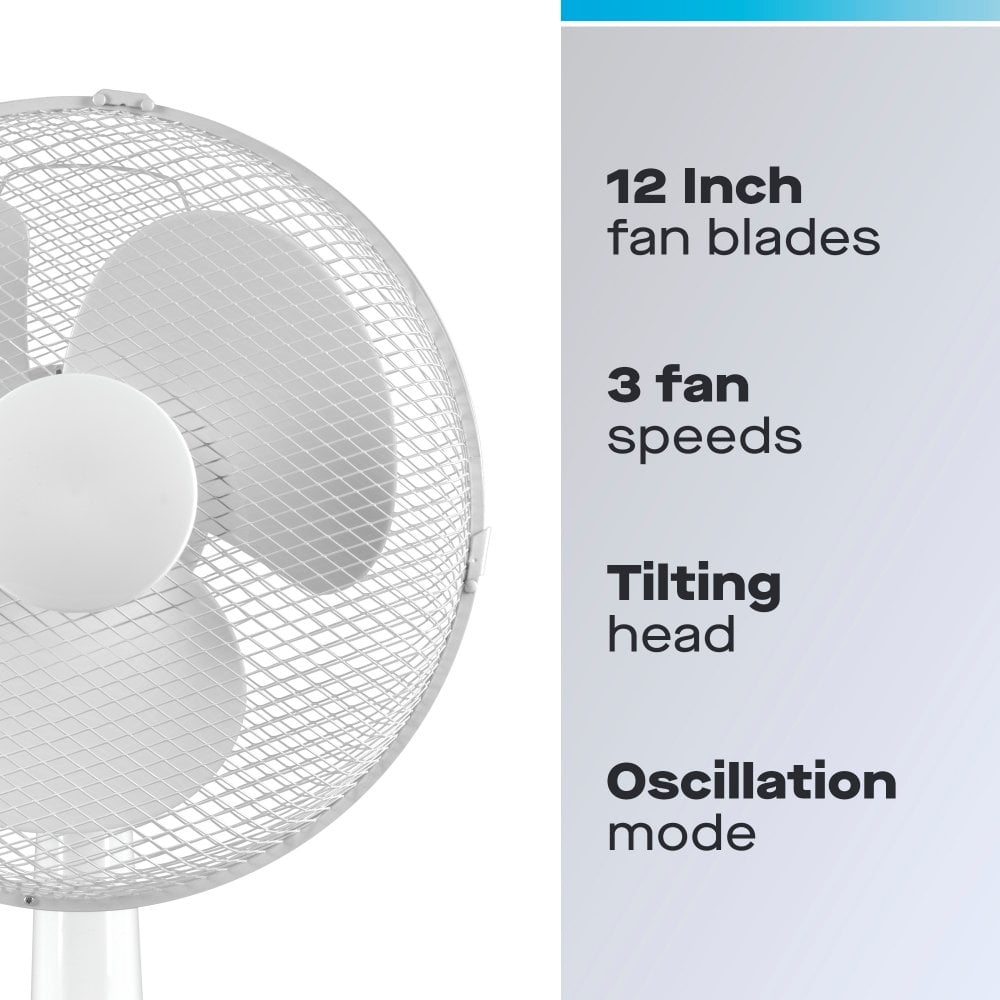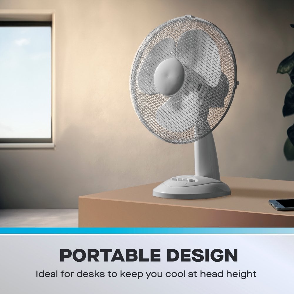 Daewoo 12" Oscillating Desk / Table Fan - White: Compact & Powerful Personal Cooling