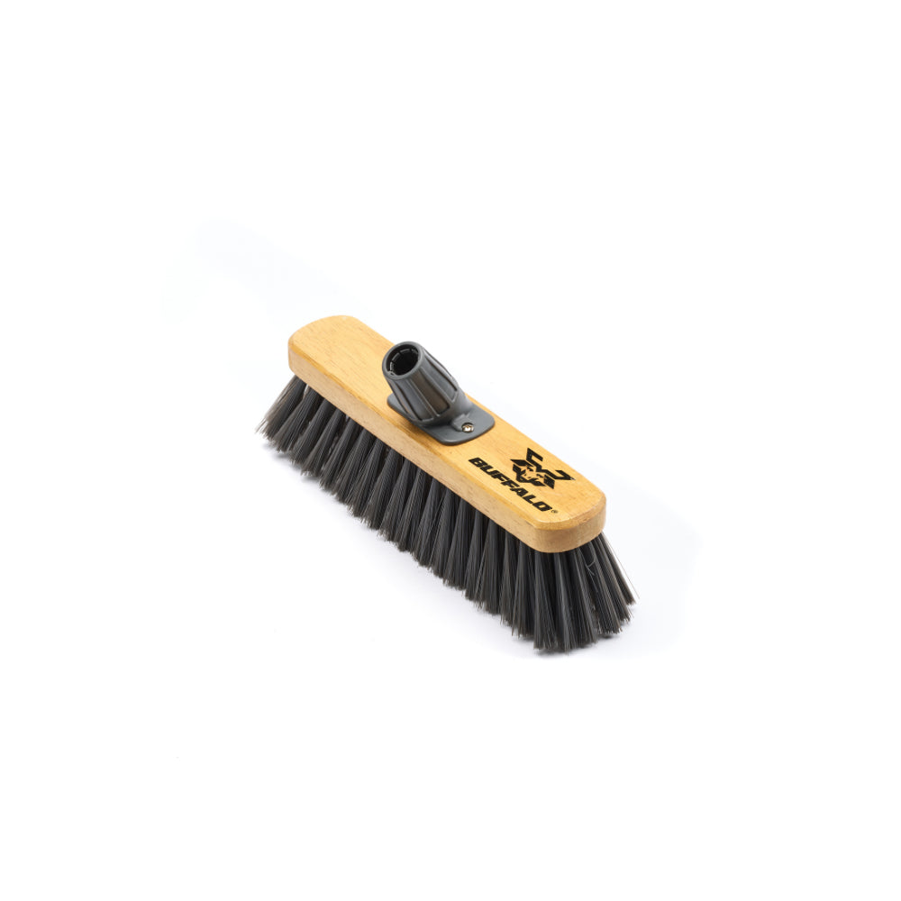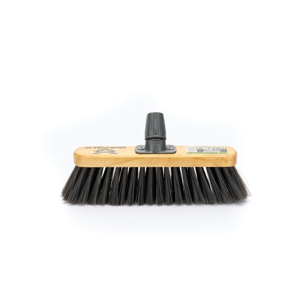 The Buffalo 12'' Soft PVC Sweeper Broom Head is an excellent choice if you need a dependable and adaptable broom for various cleaning tasks.Its "Trade Tough" construction combined with the gentle yet effective soft PVC bristles makes it ideal for maintaining a clean environment without damaging delicate surfaces.The unbeatable durability of the 'Tuff-Lok' bracket with its lifetime guarantee provides ultimate peace of mind, making this broom head a smart and long-lasting investment for your cleaning needs.