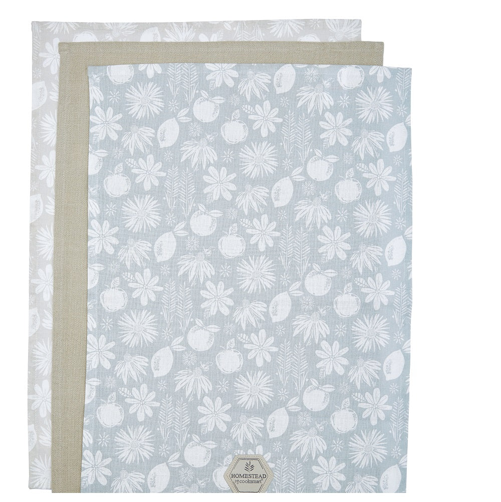 The Homestead TT2362 3 Pack Tea Towels are a set of three kitchen towels that are perfect for everyday use. The towels are made from 100% cotton and are machine washable. They are also highly absorbent and durable, making them ideal for drying dishes, wiping down surfaces, and protecting your hands from hot pots and pans.